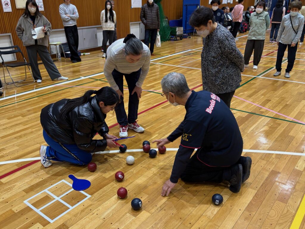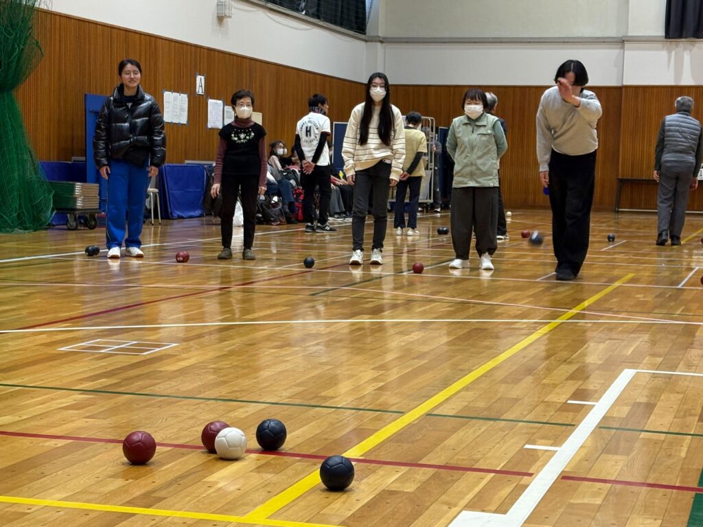 実際にボッチャをするのは今回が初めてで、進行や審判を務めることには少し不安がありましたが、ボッチャ同好会の皆様や先輩方が丁寧に教えてくださったおかげで、大きなトラブルもなく、自分自身も楽しみながら役割を全うすることができました。